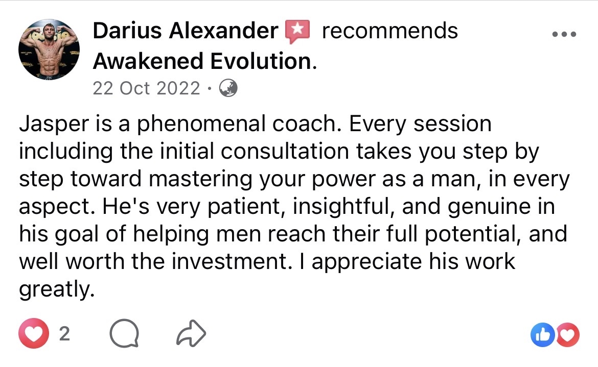 Most programs give you information. The Awakened Man Academy gives you a process. There's a significant difference between understanding something intellectually and actually integrating it into how you live, relate, and lead. The five-gate structure is designed specifically to move you through lived transformation — not just concepts. The live calls exist precisely so that what you're learning doesn't stay theoretical. Real change happens in real contact with other men doing the same work.
