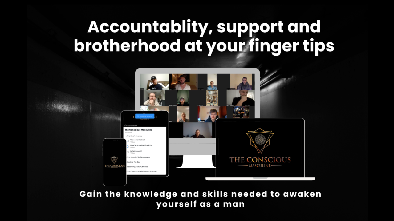 The self-paced structure means you move through the material on your schedule. Most men find two to three hours a week is enough to work through a gate and integrate it properly — less than a single evening. The live calls are an addition, not a replacement for the coursework, and recordings are available if you can't attend live. The men who get the most from this aren't the ones with the most time. They're the ones who decide this is worth making time for.